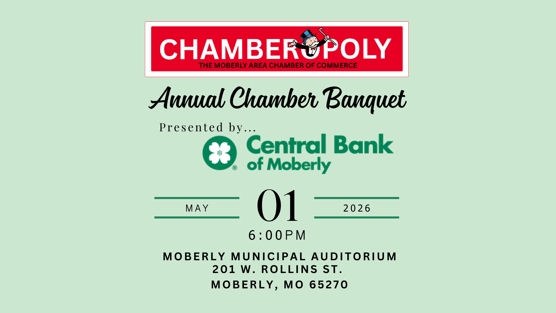 The Moberly Area Chamber of Commerce was excited to host its Annual Banquet on May 1, 2026! This event serves as the Chamber’s primary fundraiser, helping support our organization, ongoing programming, and future development. Thank you for joining us at the event in 2025 and see below for award winners and event pictures.